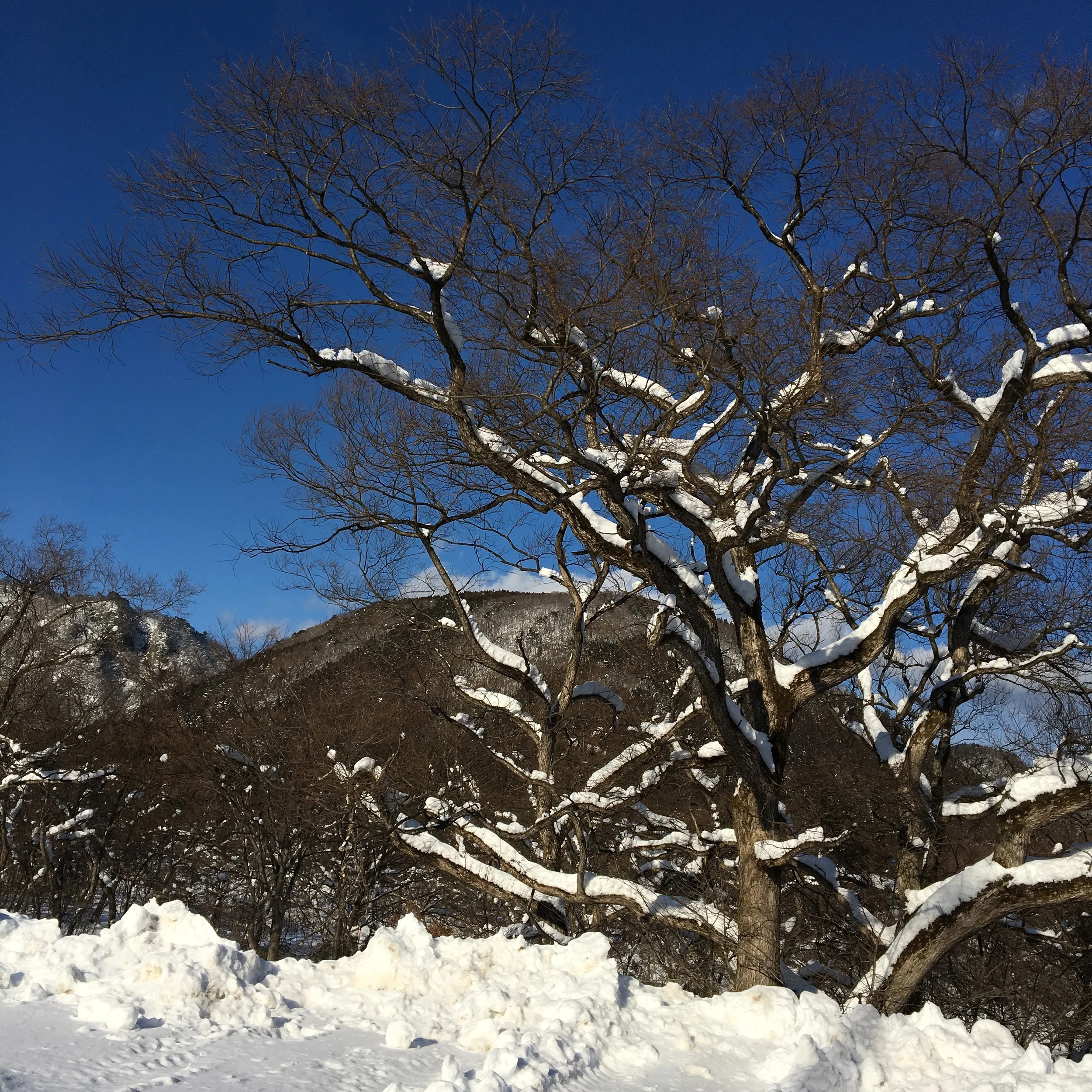 ときおり吹く風に舞う粉雪は、お日様に照らされてキラキラ。