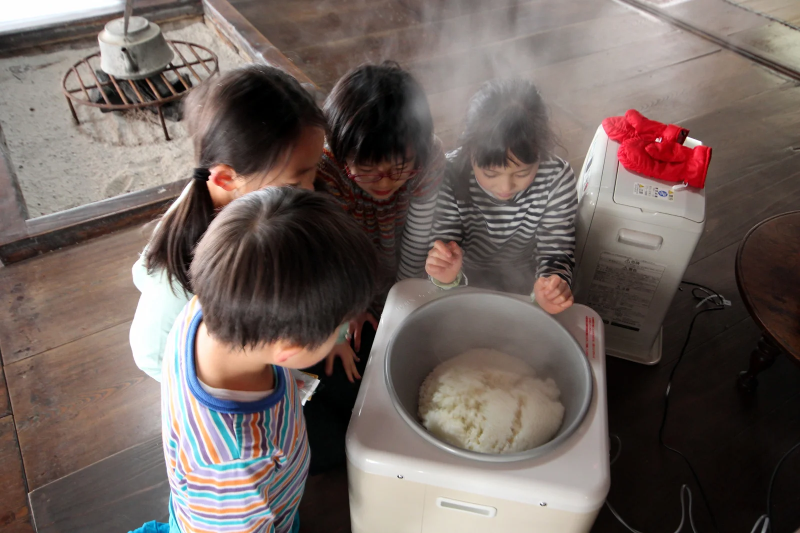 「お米のつぶつぶ、無くなったよ」「もうお餅の匂いになってきたよー!」
