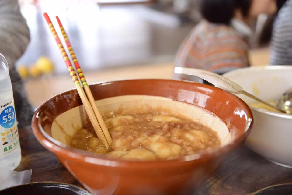 えんどう豆の餡子、大根おろしでいただきました。みんなたくさん食べてくれたぁ!
