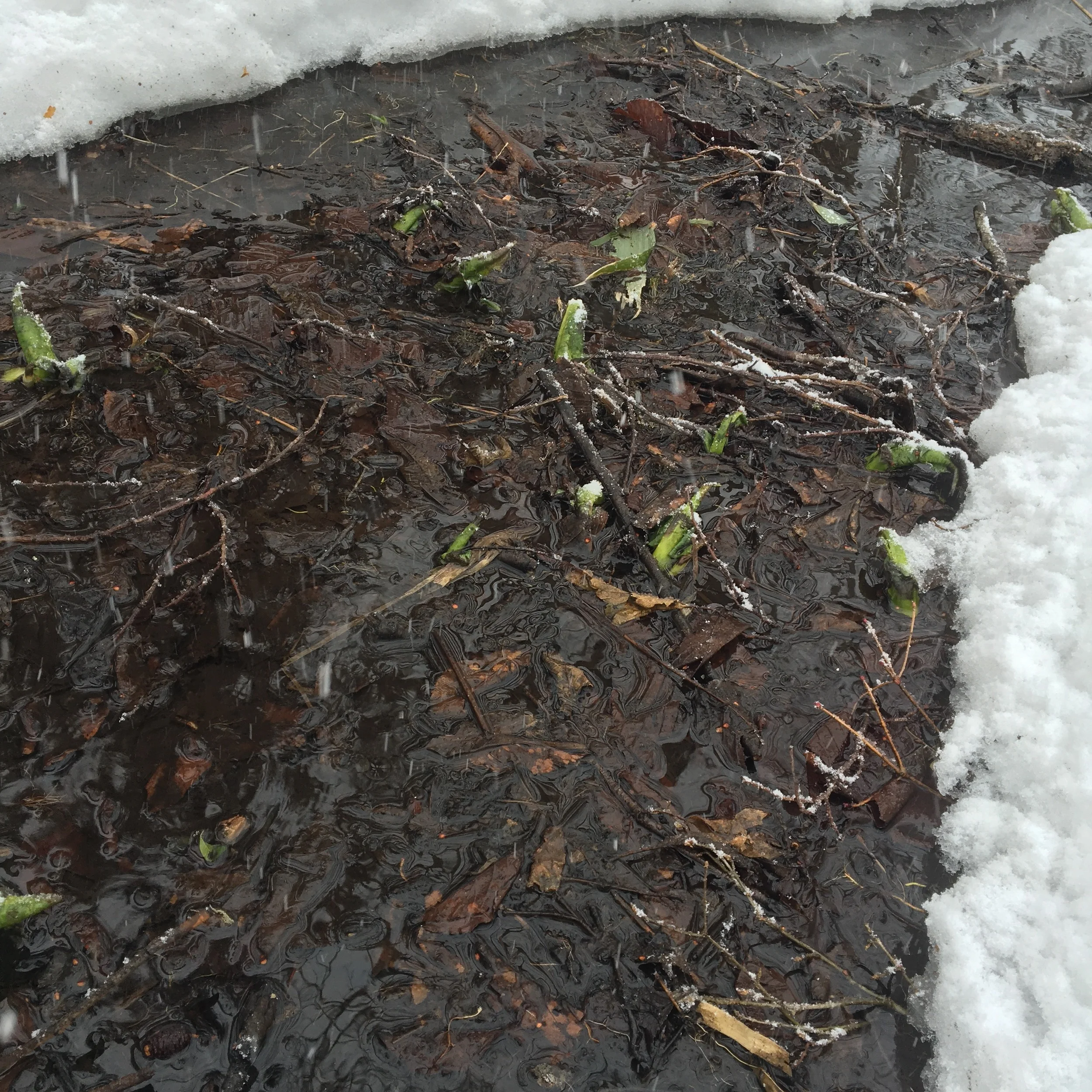 オオウバユリの実、雪の中で目を出し始めたミズバショウ、山を渡る風・・。