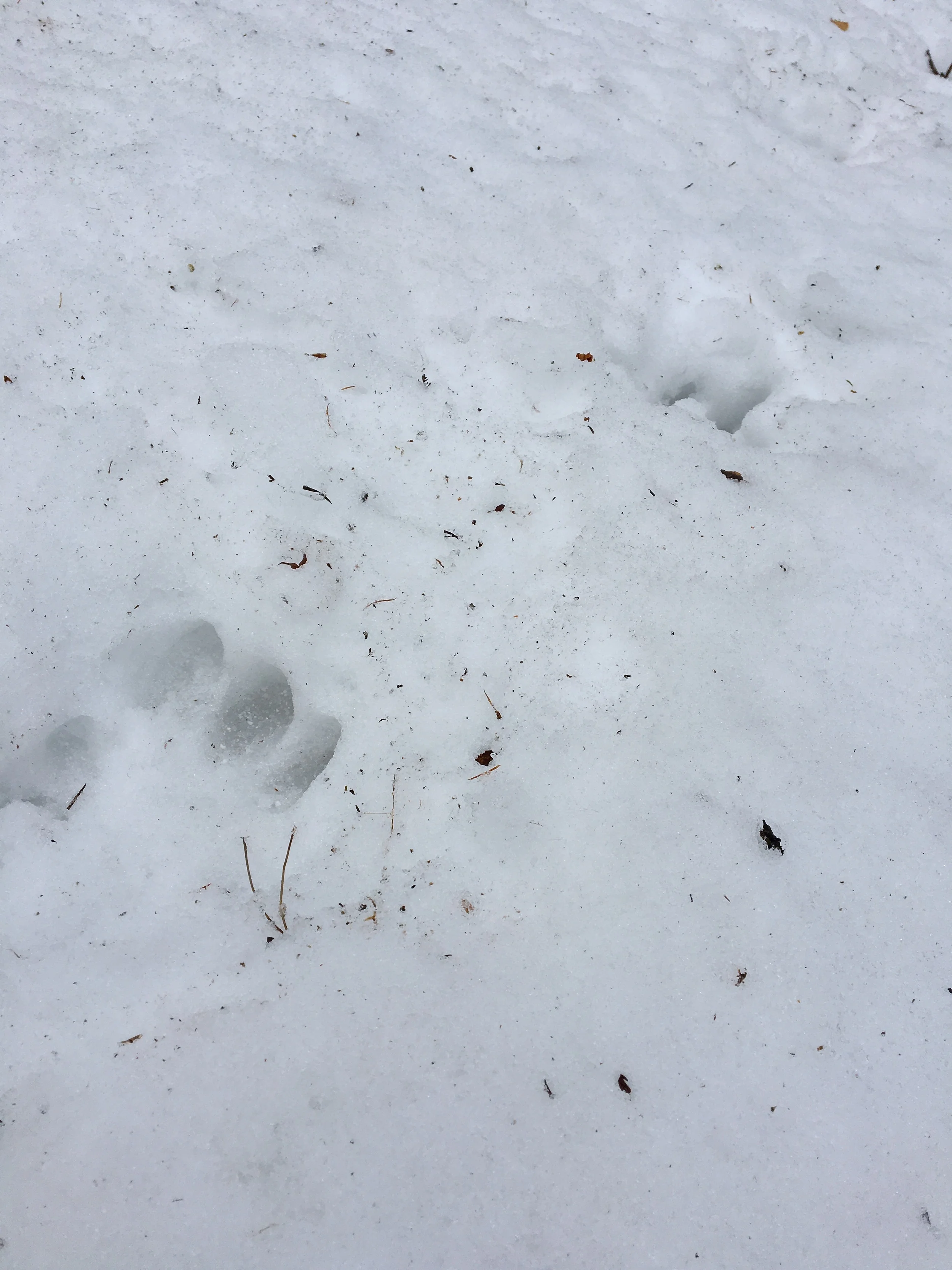 ワイワイにぎやか(笑)付いたばかりのカモシカの足跡、キツツキが木に開けた穴、