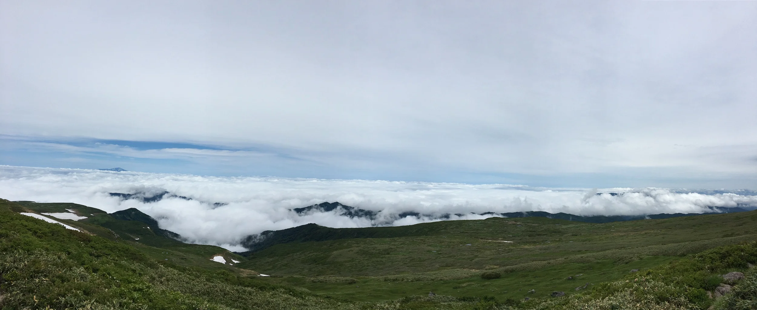 まず出迎えてくれた雲海、鳥海山がクッキリ浮かんでヒョイヒョイと渡っていけそう。