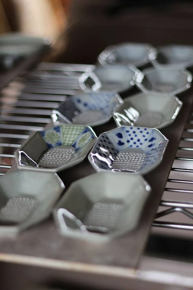 カフェで使用の楕円皿や蕎麦猪口カップのほか、こけし柄箸置きから風鈴、