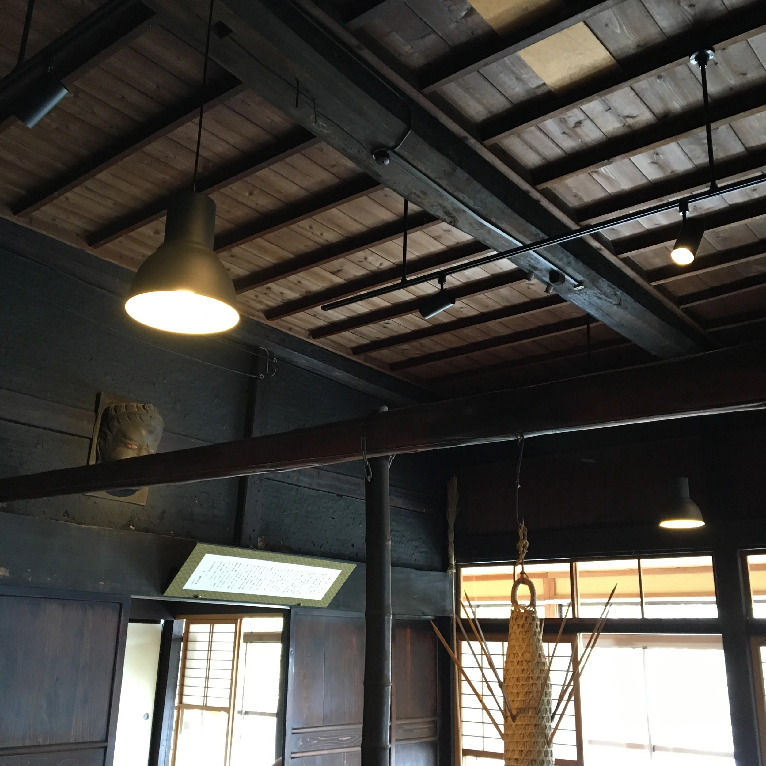です。長くて太い柱や梁、長い時間煤でいぶされてきた真っ黒な壁・・・。ギらっと