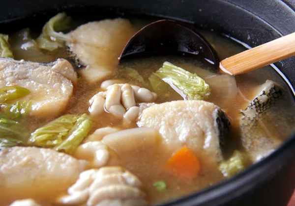 プリプリの身ととろける”鱈菊”を熱々の汁でどうぞ。