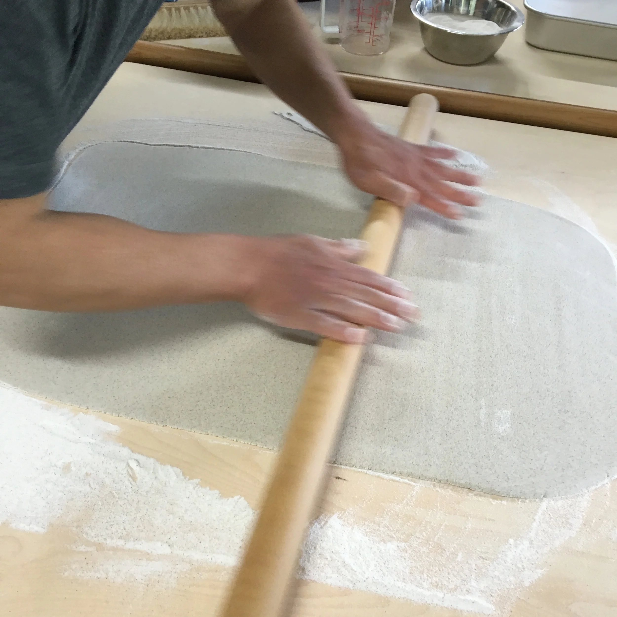 落ち着く時間です。挽きたての粉を混ぜてこねて、蕎麦打ち開始!